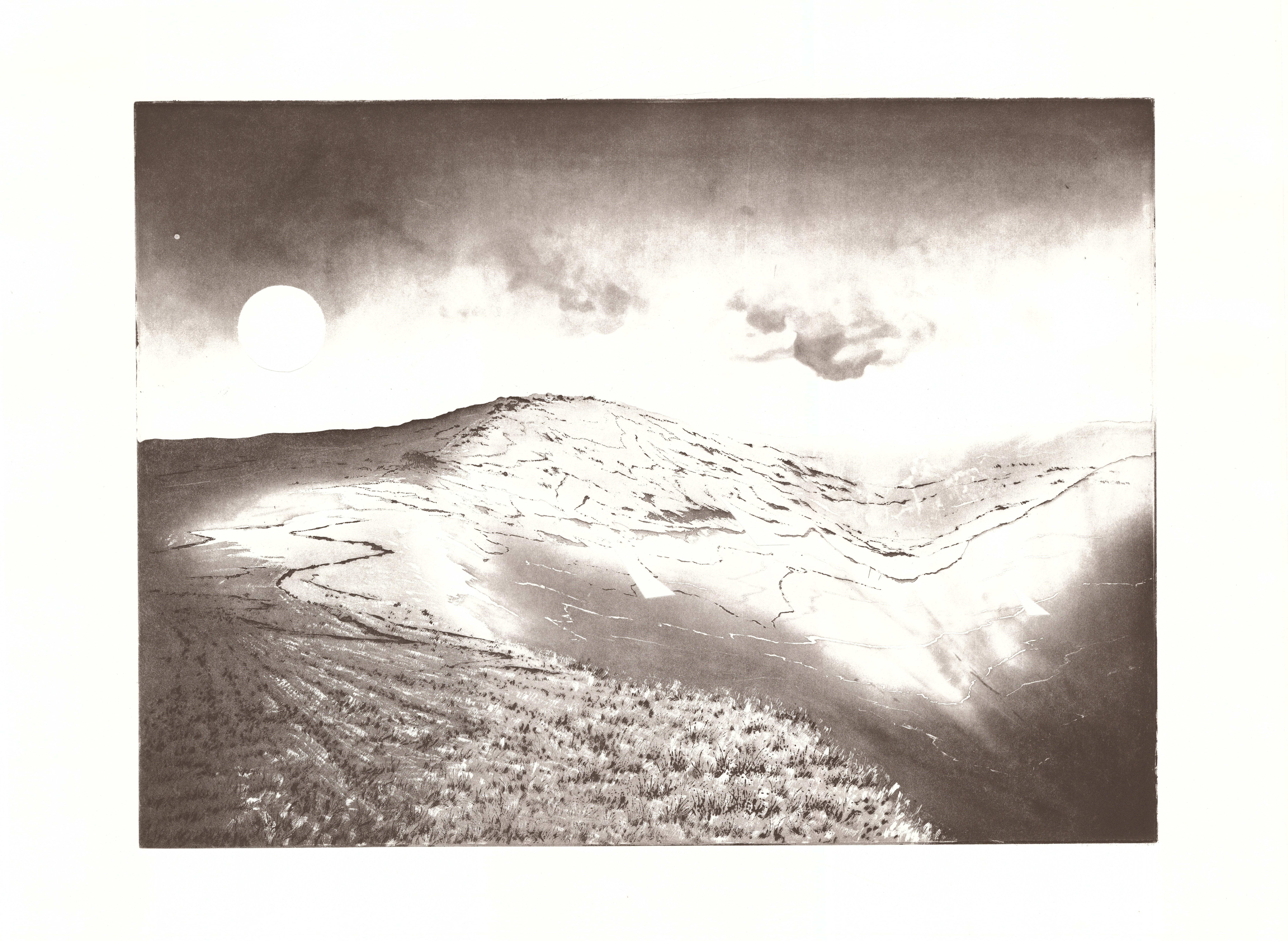 Printmaking, in particular etching, is integral to this as not only do I feel that etching has such a power to capture these nuances of both human and natural landscape, but the time its layers impose allow me to re-experience a place, I can be back with it, and so the prints emotive elements evolve as I work. The final artefacts capture the significance of place and my time within it, the work becomes a portrait of a landscape, this experience, and how I have begun to know it.