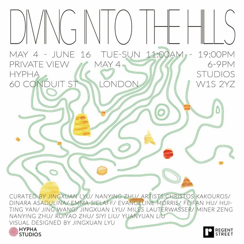It is with extream excitment I can announce the opening of Diving into the Hills, a show curated by two wonderful upcoming curators, at Hypha Studios, Mayfair London.